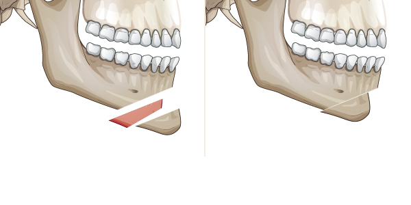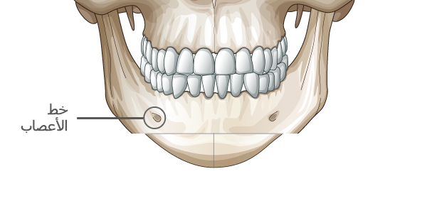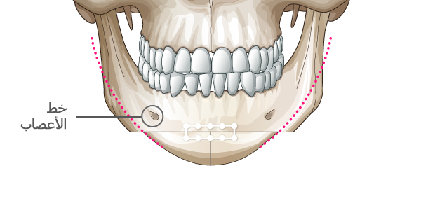 قص عظمة T على جانب الذقن لتجنب الأعصاب.